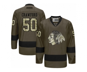 Women's Reebok Chicago Blackhawks #50 Corey Crawford Authentic Green Salute to Service NHL Jersey