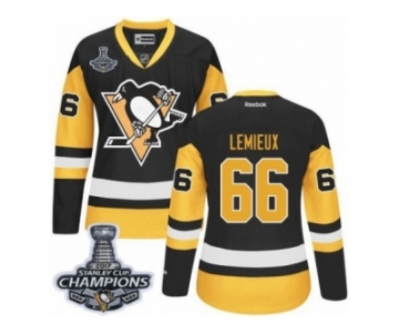 Women's Reebok Pittsburgh Penguins #66 Mario Lemieux Premier Black Gold Third 2017 Stanley Cup Champions NHL Jersey