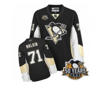 Women's Reebok Pittsburgh Penguins #71 Evgeni Malkin Authentic Black Home 50th Anniversary Patch NHL Jersey