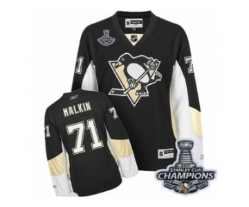 Women's Reebok Pittsburgh Penguins #71 Evgeni Malkin Premier Black Home 2017 Stanley Cup Champions NHL Jersey