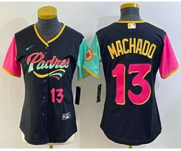 Women's San Diego Padres #13 Manny Machado Black Number 2022 City Connect Cool Base Stitched Jersey