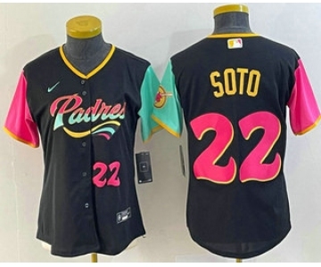 Women's San Diego Padres #22 Juan Soto Number Black 2022 City Connect Cool Base Stitched Jersey