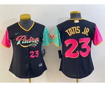 Women's San Diego Padres #23 Fernando Tatis Jr Black Number 2022 City Connect Cool Base Stitched Jersey