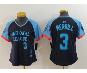 Women's San Diego Padres #3 Jackson Merrill Number Navy 2024 All Star Limited Stitched Jersey