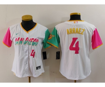 Women's San Diego Padres #4 Luis Arraez Number White 2023 City Connect Cool Base Stitched Jersey