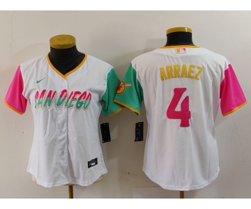 Women's San Diego Padres #4 Luis Arraez White 2023 City Connect Cool Base Stitched Jersey