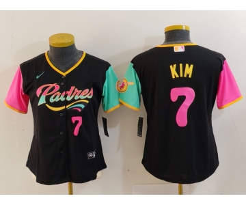 Women's San Diego Padres #7 Ha Seong Kim Black Player Number Fashion Baseball Jersey