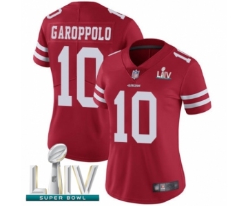 Your Position: Home>NIKE NFL Jerseys>Nike San Francisco 49ers>Nike Women>Women's San Francisco 49ers #10 Jimmy Garoppolo Red Team Color Vapor Untouchable Limited Player Super Bowl LIV Bound Football Jersey