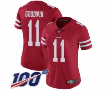 Women's San Francisco 49ers #11 Marquise Goodwin Red Team Color Vapor Untouchable Limited Player 100th Season Football Jersey