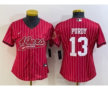 Women's San Francisco 49ers #13 Brock Purdy Red Pinstripe With Patch Cool Base Stitched Baseball Jersey