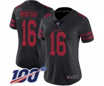 Women's San Francisco 49ers #16 Joe Montana Black Vapor Untouchable Limited Player 100th Season Football Jersey