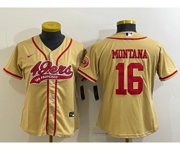 Women's San Francisco 49ers #16 Joe Montana Gold With Patch Cool Base Stitched Baseball Jersey