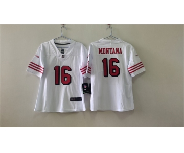 Women's San Francisco 49ers #16 Joe Montana White 2nd Alternate Football Stitched Jersey