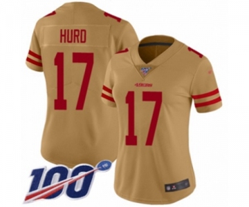 Women's San Francisco 49ers #17 Jalen Hurd Limited Gold Inverted Legend 100th Season Football Jersey