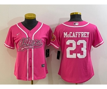 Women's San Francisco 49ers #23 Christian McCaffrey Pink With Patch Cool Base Stitched Baseball Jersey