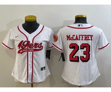 Women's San Francisco 49ers #23 Christian McCaffrey White Color Rush With Patch Cool Base Stitched Baseball Jersey