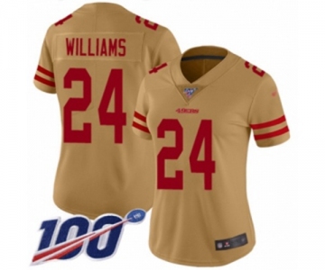 Women's San Francisco 49ers #24 K'Waun Williams Limited Gold Inverted Legend 100th Season Football Jersey