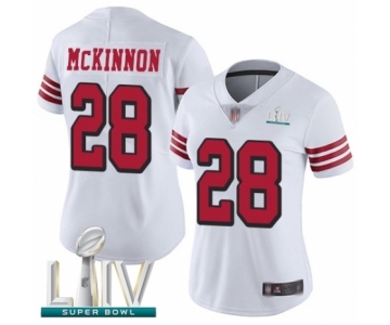 Women's San Francisco 49ers #28 Jerick McKinnon Limited White Rush Vapor Untouchable Super Bowl LIV Bound Football Jersey