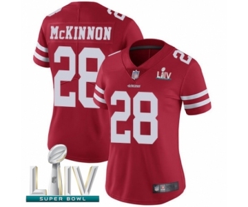 Women's San Francisco 49ers #28 Jerick McKinnon Red Team Color Vapor Untouchable Limited Player Super Bowl LIV Bound Football Jersey