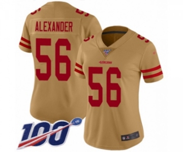 Women's San Francisco 49ers #56 Kwon Alexander Limited Gold Inverted Legend 100th Season Football Jersey