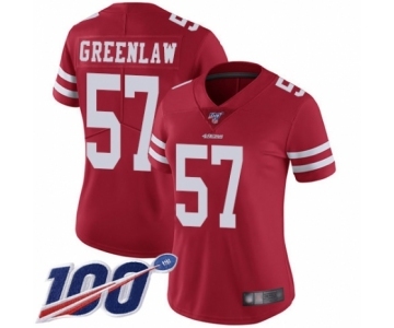 Women's San Francisco 49ers #57 Dre Greenlaw Red Team Color Vapor Untouchable Limited Player 100th Season Football Jersey