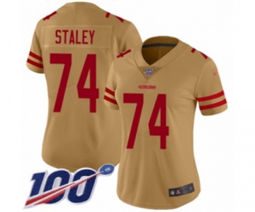 Women's San Francisco 49ers #74 Joe Staley Limited Gold Inverted Legend 100th Season Football Jersey