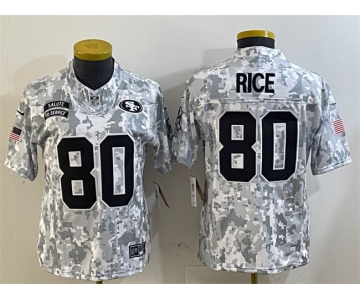 Women's San Francisco 49ers #80 Jerry Rice 2024 F.U.S.E. Arctic Camo Salute to Service Limited Football Stitched Jersey