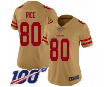 Women's San Francisco 49ers #80 Jerry Rice Limited Gold Inverted Legend 100th Season Football Jersey