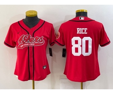Women's San Francisco 49ers #80 Jerry Rice Red With Patch Cool Base Stitched Baseball Jersey