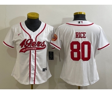Women's San Francisco 49ers #80 Jerry Rice White With Patch Cool Base Stitched Baseball Jersey