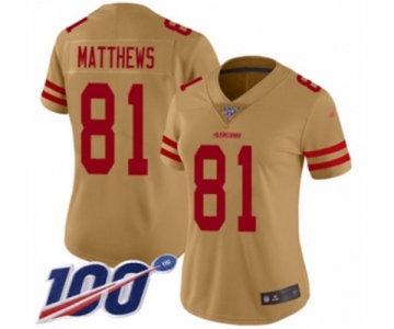 Women's San Francisco 49ers #81 Jordan Matthews Limited Gold Inverted Legend 100th Season Football Jersey
