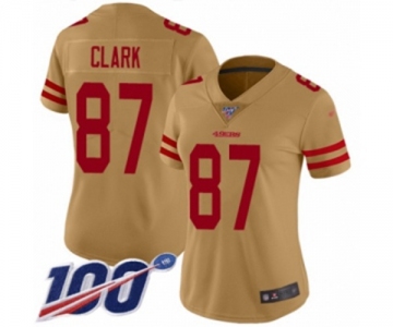Women's San Francisco 49ers #87 Dwight Clark Limited Gold Inverted Legend 100th Season Football Jersey