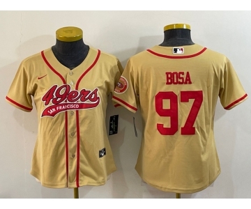 Women's San Francisco 49ers #97 Nick Bosa Gold With Patch Cool Base Stitched Baseball Jersey