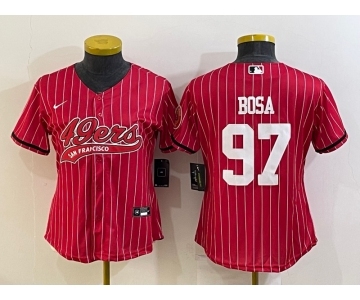 Women's San Francisco 49ers #97 Nick Bosa Red Pinstripe With Patch Cool Base Stitched Baseball Jersey