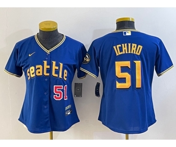 Women's Seattle Mariners #51 Ichiro Suzuki Blue 2023 City Connect Cool Base Stitched Jersey