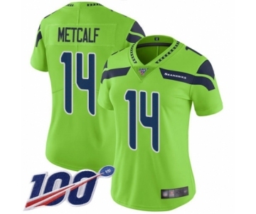 Women's Seattle Seahawks #14 D.K. Metcalf Limited Green Rush Vapor Untouchable 100th Season Football Jersey