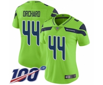 Women's Seattle Seahawks #44 Nate Orchard Limited Green Rush Vapor Untouchable 100th Season Football Jersey