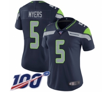 Women's Seattle Seahawks #5 Jason Myers Navy Blue Team Color Vapor Untouchable Limited Player 100th Season Football Jersey
