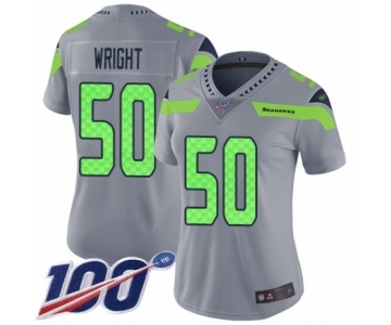 Women's Seattle Seahawks #50 K.J. Wright Limited Silver Inverted Legend 100th Season Football Jersey