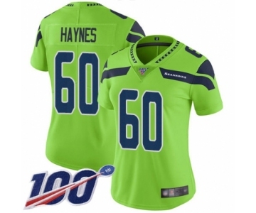 Women's Seattle Seahawks #60 Phil Haynes Limited Green Rush Vapor Untouchable 100th Season Football Jersey