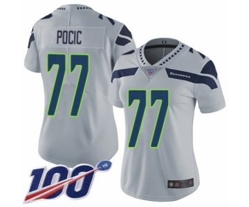 Women's Seattle Seahawks #77 Ethan Pocic Grey Alternate Vapor Untouchable Limited Player 100th Season Football Jersey