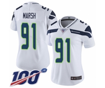 Women's Seattle Seahawks #91 Cassius Marsh White Vapor Untouchable Limited Player 100th Season Football Jersey