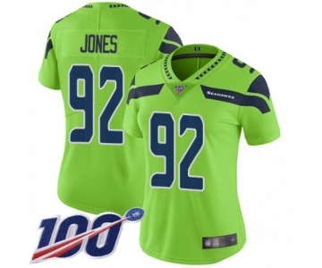 Women's Seattle Seahawks #92 Nazair Jones Limited Green Rush Vapor Untouchable 100th Season Football Jersey