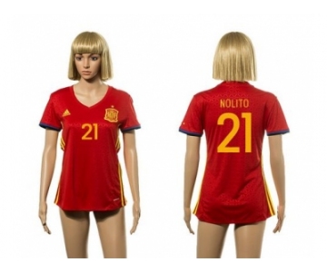 Women's Spain #21 Nolito Red Home Soccer Country Jersey