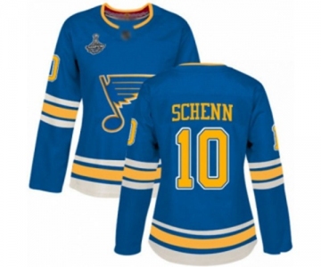 Women's St. Louis Blues #10 Brayden Schenn Authentic Navy Blue Alternate 2019 Stanley Cup Champions Hockey Jersey