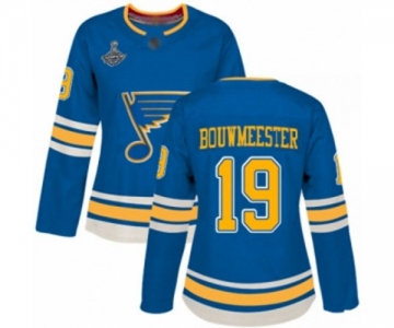 Women's St. Louis Blues #19 Jay Bouwmeester Authentic Navy Blue Alternate 2019 Stanley Cup Champions Hockey Jersey