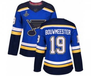 Women's St. Louis Blues #19 Jay Bouwmeester Authentic Royal Blue Home 2019 Stanley Cup Champions Hockey Jersey