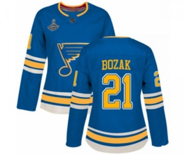 Women's St. Louis Blues #21 Tyler Bozak Authentic Navy Blue Alternate 2019 Stanley Cup Champions Hockey Jersey