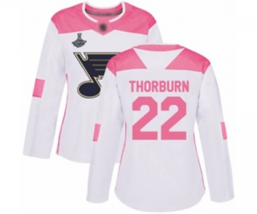 Women's St. Louis Blues #22 Chris Thorburn Authentic White Pink Fashion 2019 Stanley Cup Champions Hockey Jersey