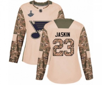 Women's St. Louis Blues #23 Dmitrij Jaskin Authentic Camo Veterans Day Practice 2019 Stanley Cup Champions Hockey Jersey